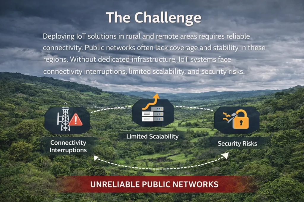 Deploying IoT solutions in rural and remote areas requires reliable connectivity. Public networks often lack coverage and stability in these regions. Without dedicated infrastructure, IoT systems face connectivity interruptions, limited scalability, and security risks.
