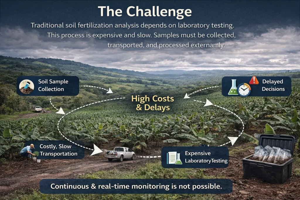 Soil fertilization analysis traditionally depends on laboratory testing. This process is expensive and slow. Samples must be collected, transported, and processed externally. As a result, decisions related to fertilization and soil correction are delayed. Continuous and real time monitoring is not possible using conventional methods.