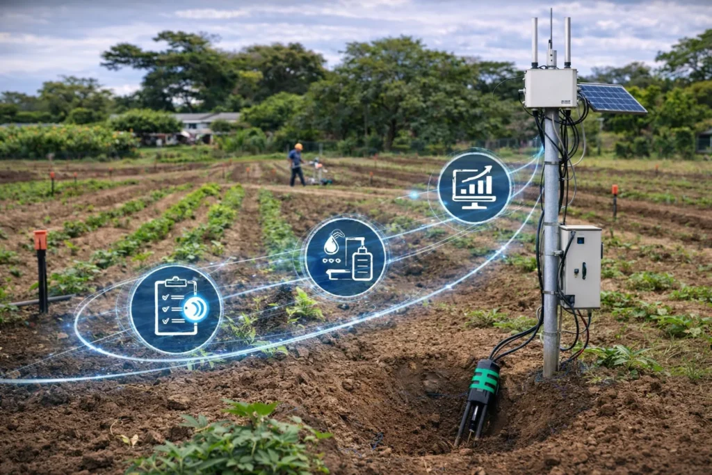 A LoRaWAN-based smart agriculture solution designed for scientific research environments. This project enables continuous monitoring of soil and environmental conditions, automated irrigation control, and reliable data collection across experimental plots. Researchers gain accurate, real-time insights to analyze crop behavior, improve irrigation strategies, and support data-driven agricultural innovation